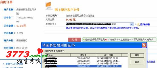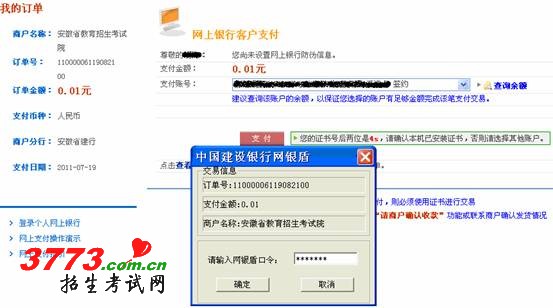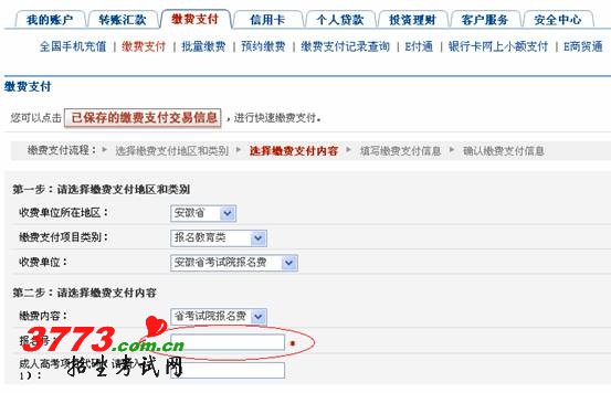 为做好2011年度安徽省成人高等学校招生网上报名缴费工作,为广大考生提供更加方便、快捷、安全的缴费渠道,我行共提供四种缴费方式,考生可根据需要任意选择。中国建设银行预祝您考试成功!