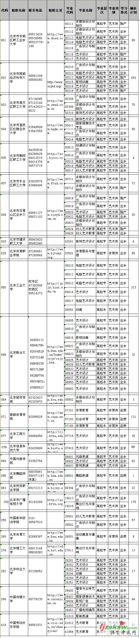 2009年北京市成考录取第一批院校余缺计