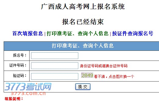 2013广西成人高考已报名考生重新核对报名信息的通知