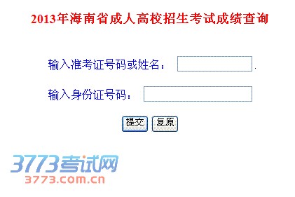 2013年海南省成人高校全国统一考试成绩发布公告 2013年海南省成人高校全国统一考试成绩11月22日公布, 考生可登录海南省考试局网站(http://ea.hainan.gov.cn/ckbm/ckcj.php)凭姓名或准考证号和填写报考时所使用的身份证号码即可查询本人的考试成绩。
