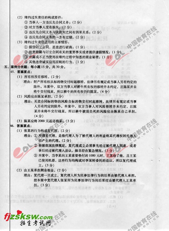 2010年成考专升本民法试题答案 2010年成人高考专升本民法试题答案