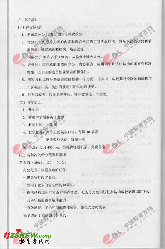 2010成考高考高起点英语试题及答案