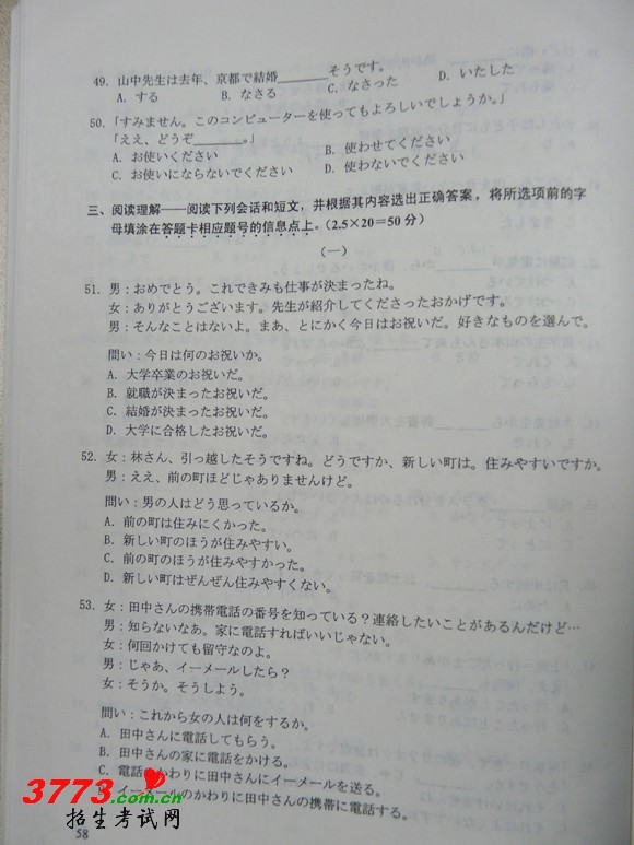 招生考试网 - 成人高考 - 试题答案 - 正文