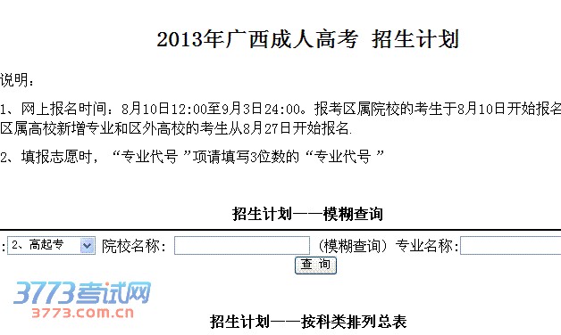 层次选择: 1、全部层次 2、高起专 3、高起本 4、专升本 院校名称: (模糊查询) 专业名称: (模糊查询)