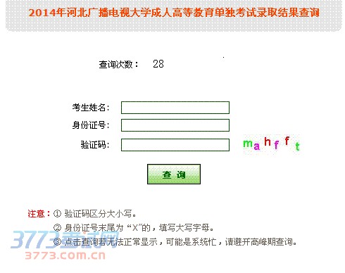 2014年河北广播电视大学成人高等教育单独考试录取结果查询