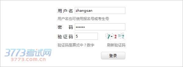 5、进入登录界面后,填写刚才设置的用户名和密码,填写验证码,点击登录按钮进入报名系统。在报名点现场确认后,再次登录报名系统时用户名也可使用报名号或考生号。