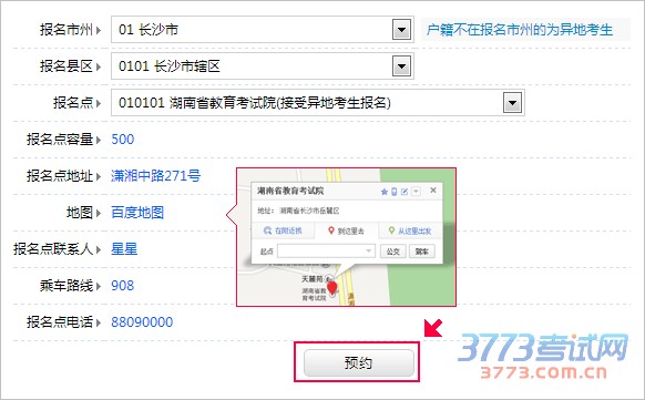 1、考生必须选择一个报名点进行现场确认审核,选择报名点后,点击“预约”按钮进行预约。