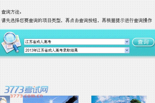 2013江苏成人高考录取查询系统入口 通过16887744声讯台和江苏省教育考试院官网的查询中心进行查询。
