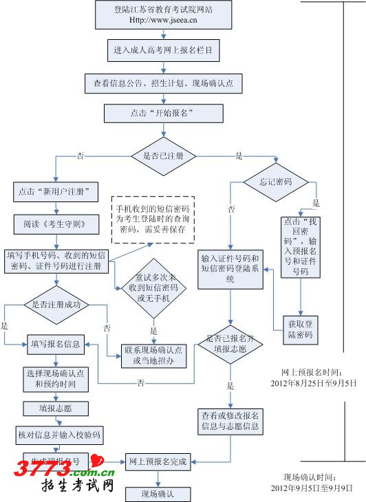 江苏省2012年成人高考现场确认具体流程