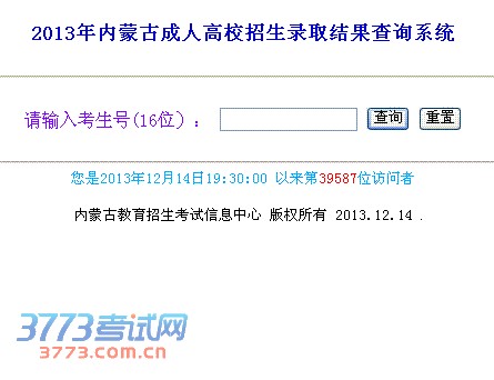 2013年内蒙古成人高校招生录取结果查询系统