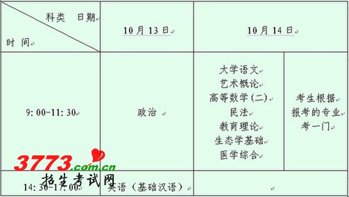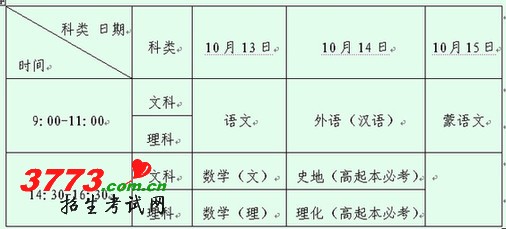 据悉,新疆因有蒙语言考生参加全国成人高校招生统一考试,自治区成人高校招生统一考试将在10月13日至15日进行,各科目考试时间具体安排详见附表。