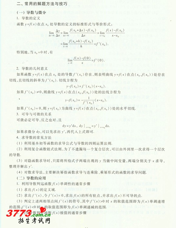 2011成考专升本高数(二)复习一元函数微分学