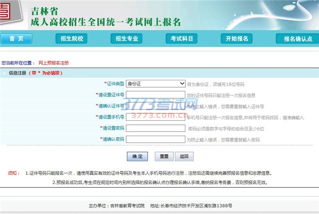 2016吉林长春成人高考报名入口 吉林省成人高考网上报名唯一网站为http://www.jleea.com.cn,吉林省教育考试院未授权任何单位和个人受理考生报名。