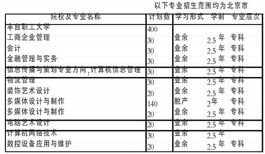第九条 2006年北京市丰台区职工大学招生专业