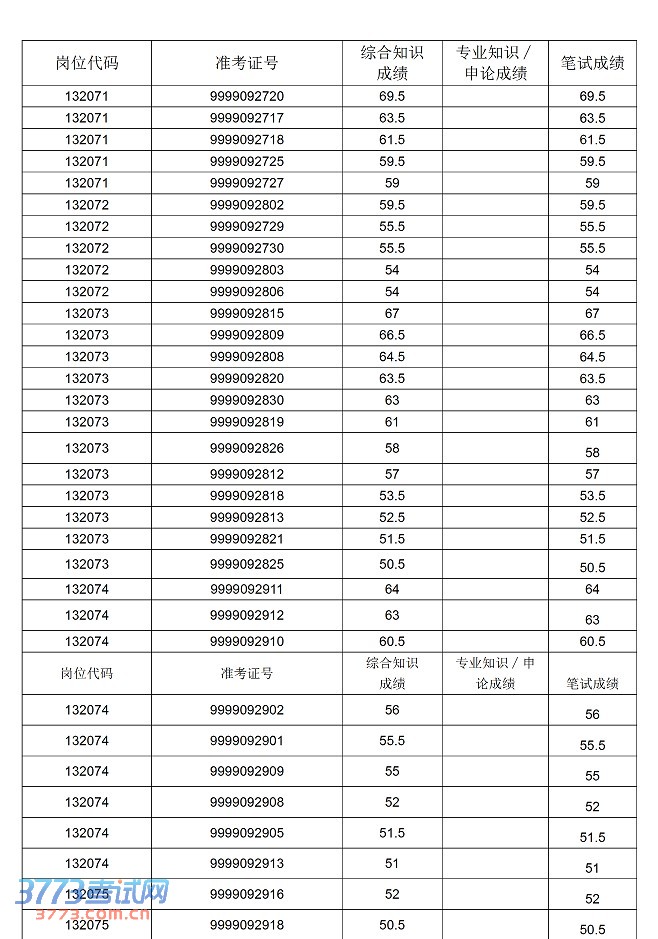 安徽2013合肥长丰事业单位招聘笔试成绩