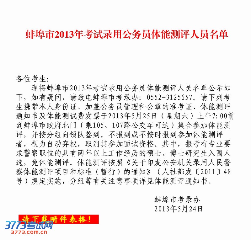 安徽蚌埠市2013录用公务员体能测评人员名单