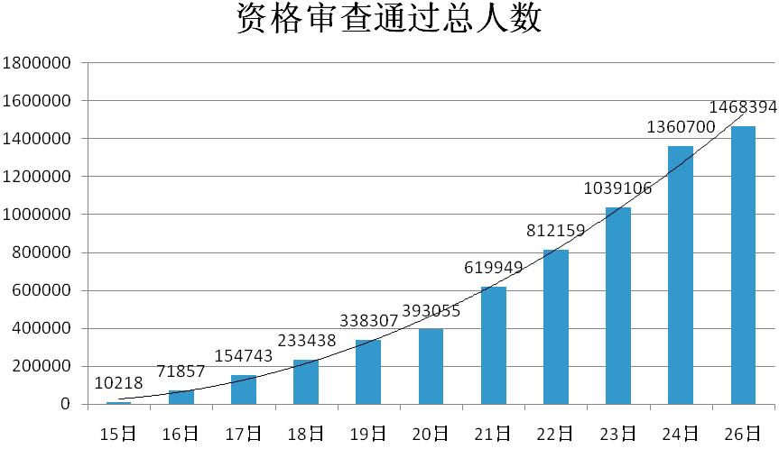 20日一天的报名人数出现了下降,当天只有5万余人通过资格审查,这也是比较正常的情况,因为处在报名时间中段这样一个不上不下的位置上。报名经验不足的考生,在前期基本已经都选择好了职位并通过了资格审查,而等待最佳报考时间的“老油条”们还没有开始发力,因此出现了20日当天“青黄不接”的局面。
