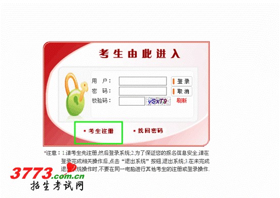 2、出现以下页面,进行考生信息的注册,如图,点击“考生注册”