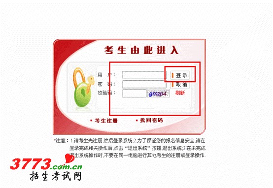 6、回到登入页面进行登入。注意:验证码请严格按照图片所示的大小写进行填写。