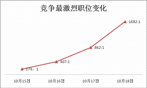 从表中明显可以看出无人报考职位数目大幅降低,越来越多的考生从报名的观望阶段开始过度到报名阶段,从数据变化及以往经验来看,国考报名高峰期已经来临。