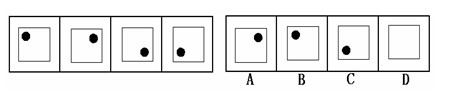解答:在例题中,黑点在正方形中顺时针移动。在第5个图形中,应该正好移动到左上角。因此,正确答案是B。