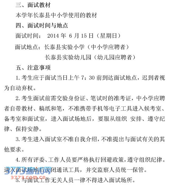 泰宁县教育局2014年公开招聘教师面试工作方案