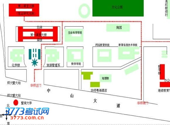 2013国家公务员考试广东考点华南师范大学乘车路线图