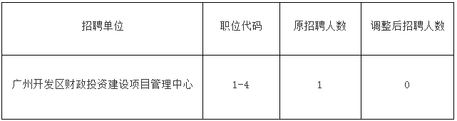 2018年广州市黄埔区、广州开发区重点高校公开招聘事业单位工作人员(广州设点)报名工作已结束,部分岗位未达公告的开考比例,根据有关规定,现将需调整招聘人数的岗位公告如下: