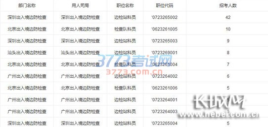 出入境边防检查招考人数最多十大职位。华图教育提供
