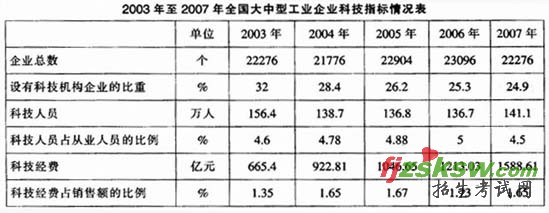 C.全国大中型工业企业的科研经费的增长幅度从2003年至2007年五年来一直高于销售额的增长额度