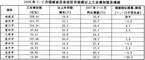 D.2008年1-2月宁德、福州、漳州、龙岩4个设区市工业增加值增速较上年同期也有所加快