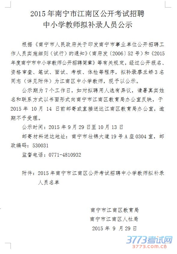 2 江南区教育局 南宁市五一中路学校 小学语文教师 4501050025 汉语言文学、汉语言文学教育 大学本科及以上 学士学位及以上 无要求 35周岁及以下 具有相应教师资格证书,普通话二级甲等及以上 无要求 李宛真 女 450100400822 134 74.6
