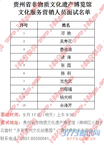 2015贵州省非物质文化遗产博览馆文化服务营销人员面试名单