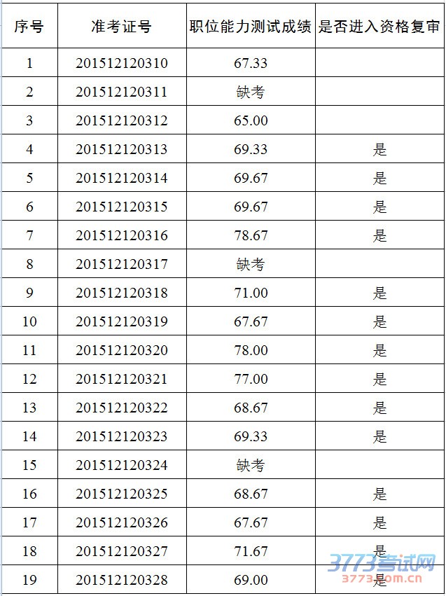 资格复审合格者,进入面试;资格复审不合格者,取消其进入面试资格,按职位能力测试成绩从高到低依次递补。