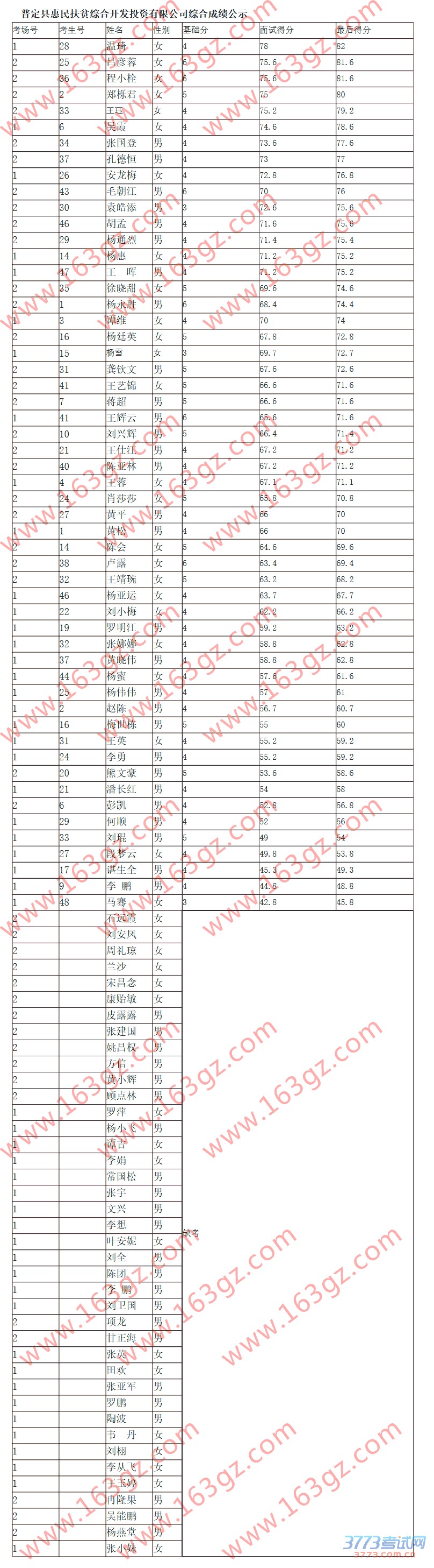 普定县惠民扶贫综合开发投资有限公司2015招聘综合成绩公示