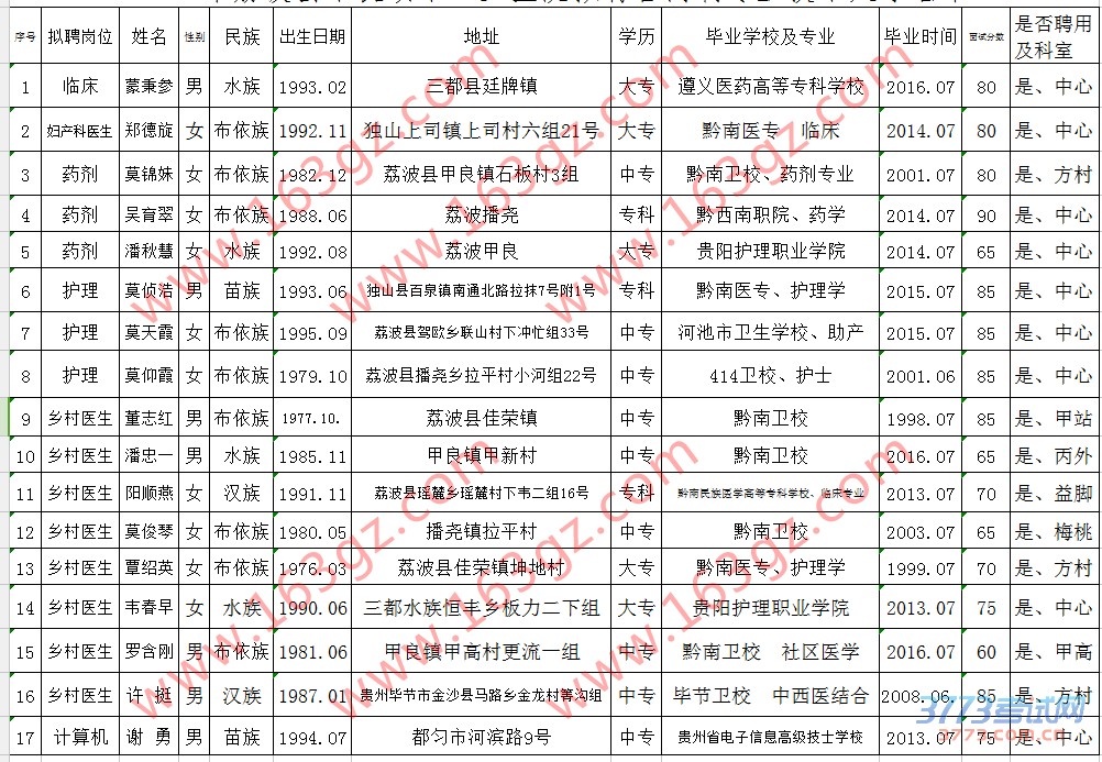 贵州荔波县甲良镇中心卫生院2016拟聘名单公示
