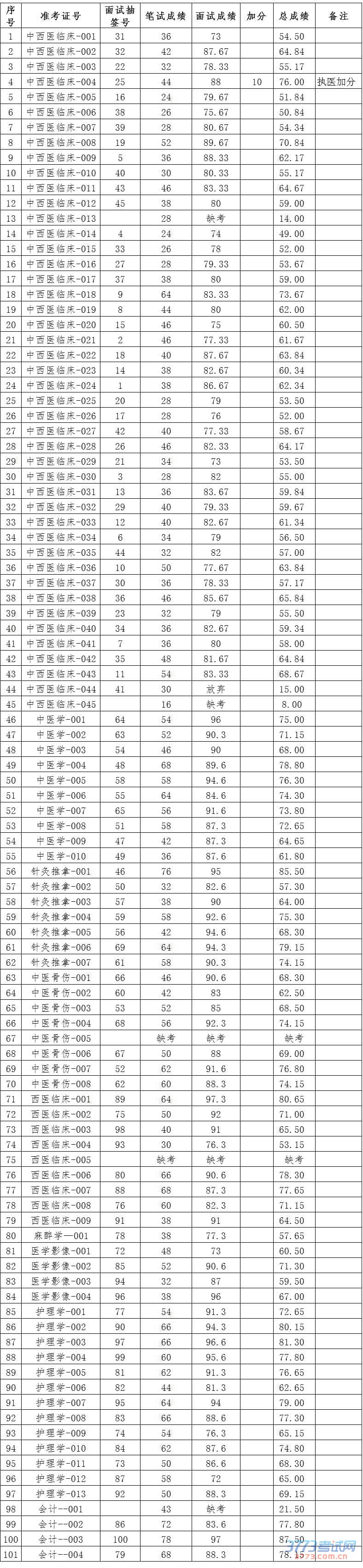 石阡县中医医院2016年公开招聘专业技术人员成绩公示
