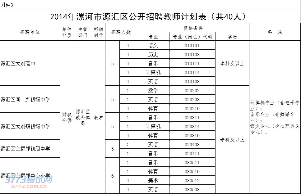 2014年河南省漯河市教育系统招聘275名教师实施方案