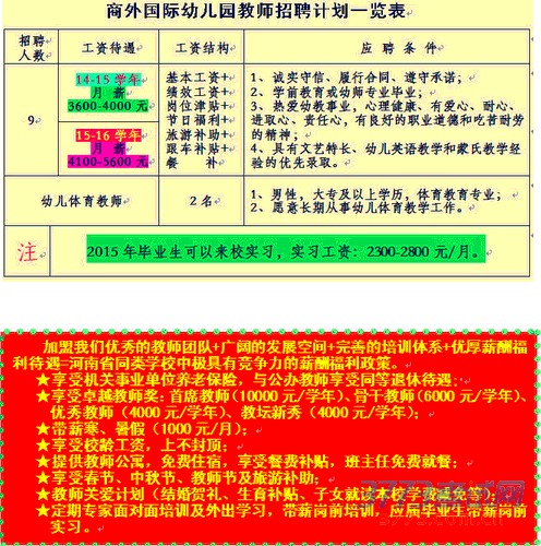 三、幼儿教师招聘计划、工资待遇及应聘条件