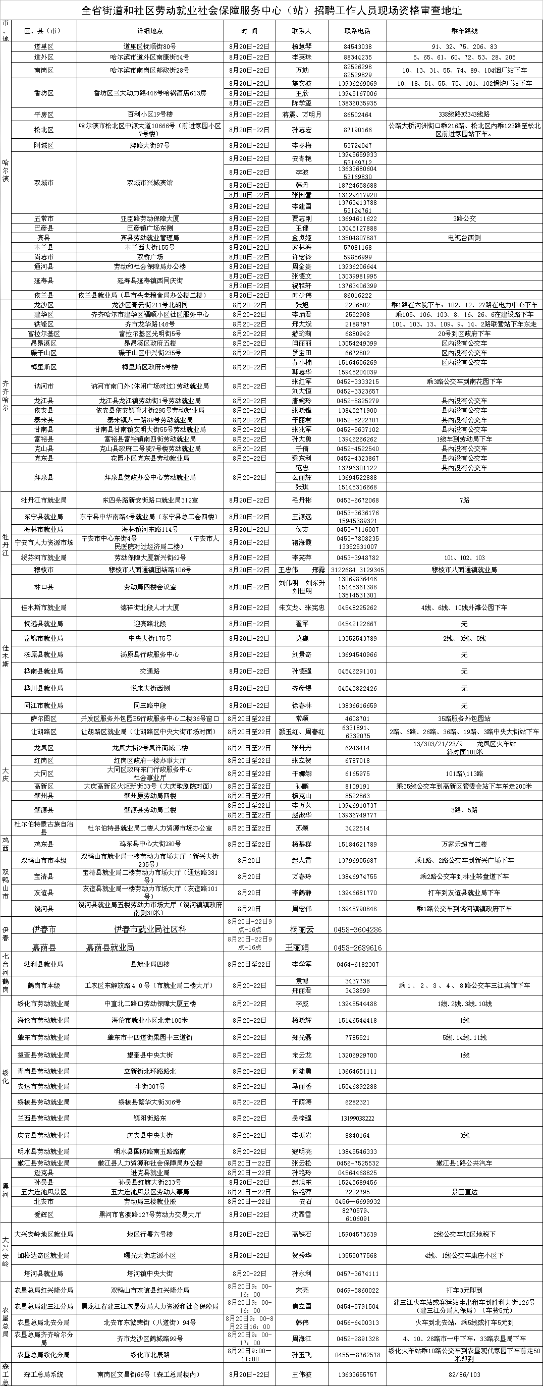黑龙江省街道、社区劳动就业社会保障服务中心(站)招聘人员分配表