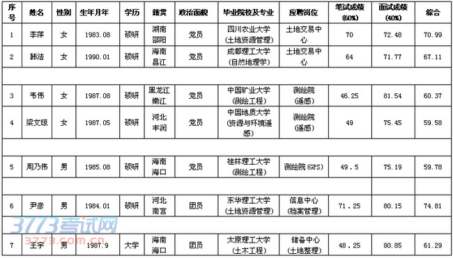 海口市国土资源局下属事业单位2014招聘公告(第8号)