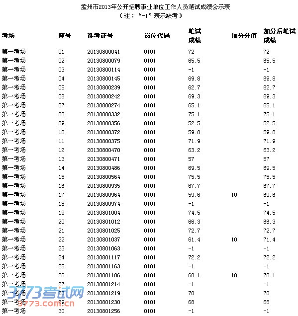 河南2013开封援助困难高校毕业生公益性岗位笔试成绩