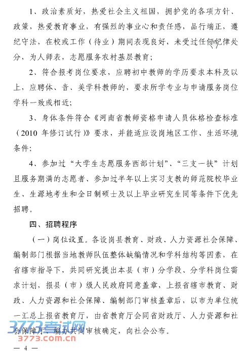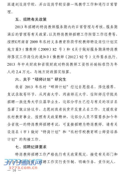 关于印发河南省2013年农村义务教育阶段学校特设岗位教师招聘办法和岗位设置的通知