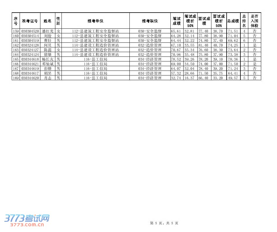湖南长沙县综合类2014招聘机关事业单位工作人总成绩及排名