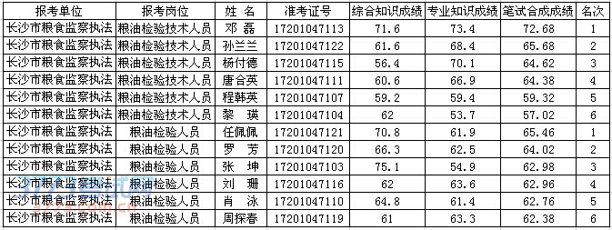 2014湖南长沙市粮食监察执法队招聘名单及考核方案