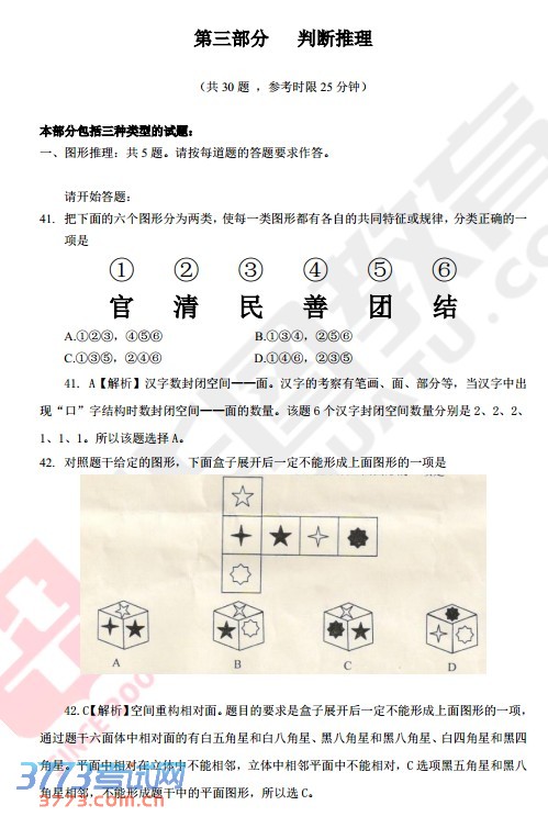 2013吉林公务员行测试卷答案解析(甲级判断推理)