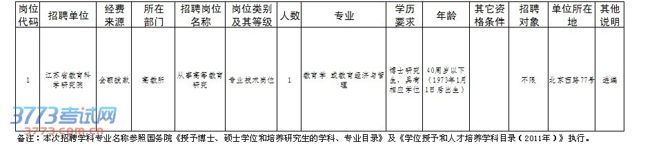 2013江苏省教育科学研究院招聘延长报名时间岗位表