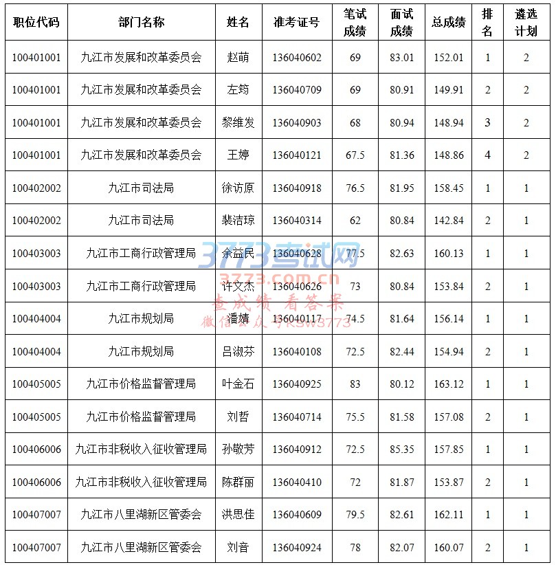 根据《九江市2018年上半年市直行政单位公开遴选公务员公告》要求,经网上报名、笔试、资格审查、面试等程序,按照考察对象与遴选职位计划数差额确定考察人选16名(考察比例为1:2)。现将考察人选予以公告。