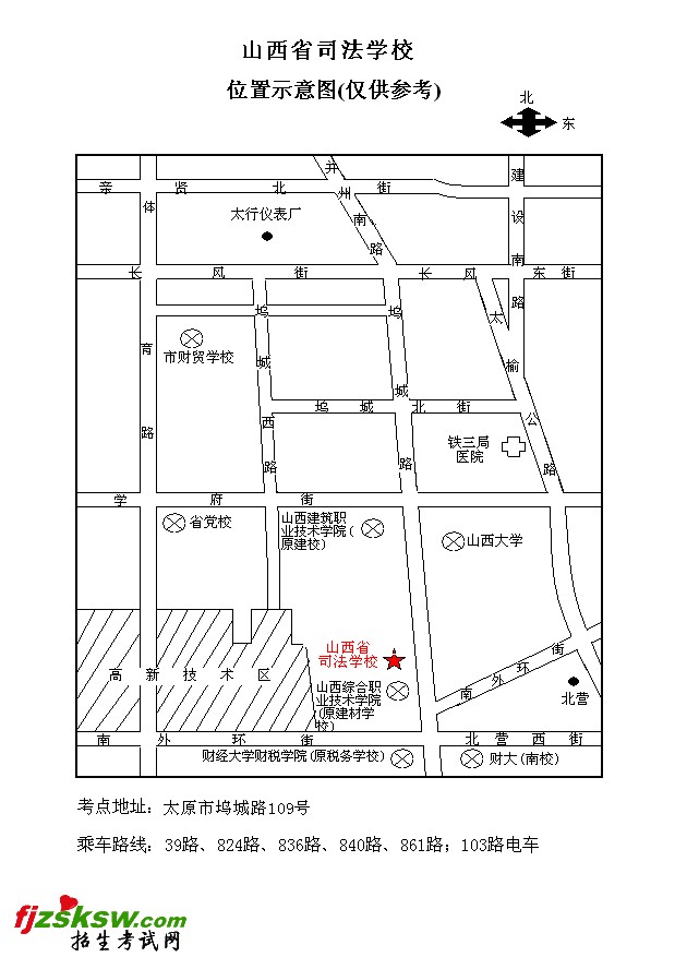 2010年政法干警招录培养体制改革试点笔试山西考区考点情况一览表