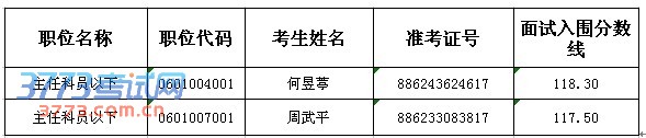 因部分考生放弃面试资格,根据公务员招考有关规定,拟在公共科目笔试合格的考生中,按照笔试成绩从高到低的顺序,递补以下考生为面试人选(由招录机关在系统内选择):